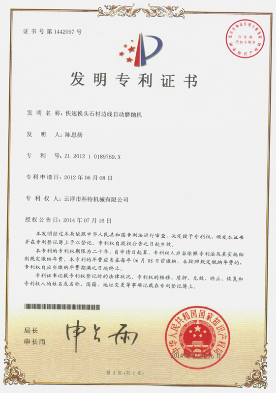 企業(yè)組建了“云浮市石材機械裝備工程技術研究開發(fā)中心”,并與高校和科研院所密切合作,致力于光機電一體化產(chǎn)品的研發(fā)、生產(chǎn)、銷售和服務。主要產(chǎn)品有框架鋸、全自動連續(xù)磨拋機、橋式自動切割機、全自動仿形石線機、數(shù)控金剛石繩鋸、裁切機等。產(chǎn)品具有自動化程度高、加工精度高和生產(chǎn)效率高等特點。產(chǎn)品除國內(nèi)銷售外,還出口到歐美、東南亞、韓國、印度、中東、非洲、俄羅斯、澳大利亞等國家和地區(qū),深受用戶好評。“橋式自動切割機”被認定為廣東省高新技術產(chǎn)品,擁有發(fā)明專利1項、實用新型專利1項。